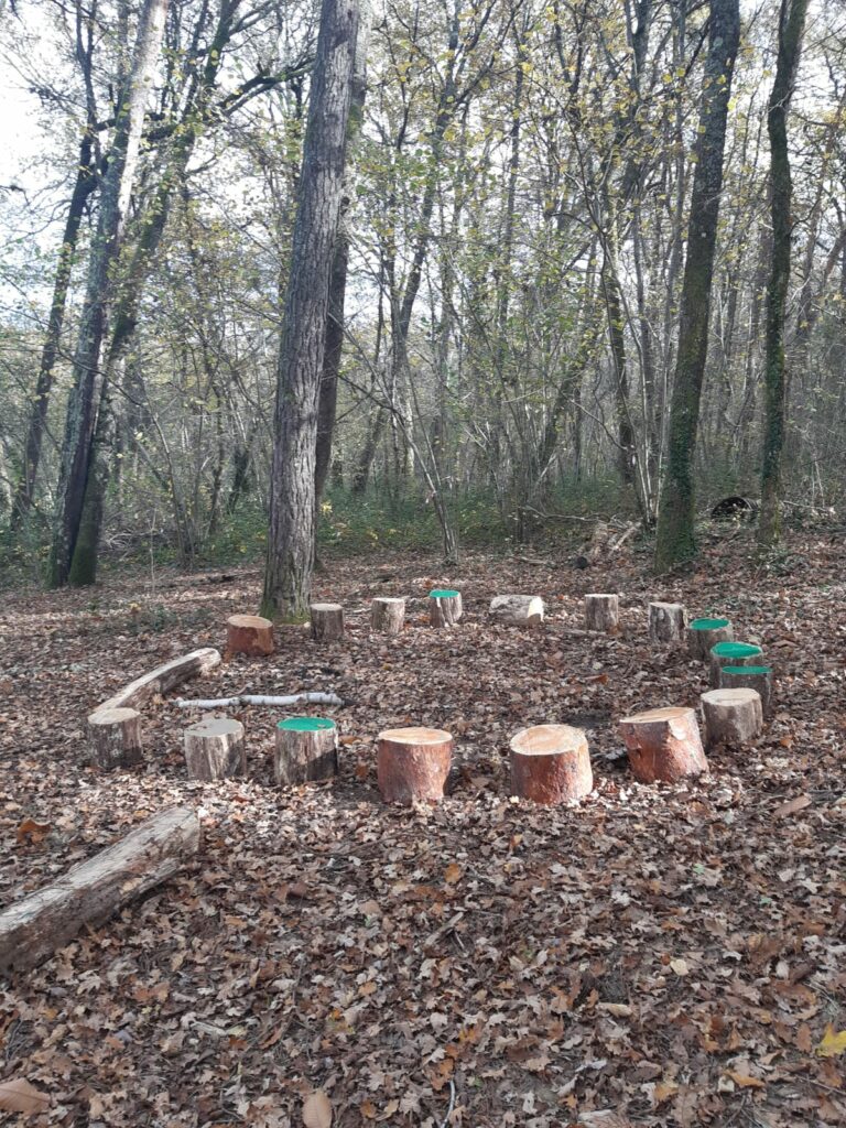 La mairie a d’abord assuré le nettoyage nécessaire et la mise en sécurité du site. L’APEEF (Association de Parents d’Elèves de l’Ecole de Fabas) a ensuite poursuivi le réaménagement : installation de rondins pour s’asseoir, création de bancs, chemins plus lisibles, espaces dégagés… Tout a été pensé pour rendre le lieu accueillant, sécurisant et propice aux explorations.