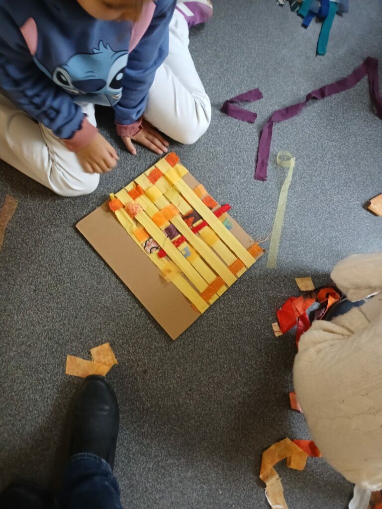 Si l’ensemble des productions réalisées n’est pas présenté, chaque enfant a néanmoins contribué à une œuvre collective de tissage, véritable fil conducteur du projet.