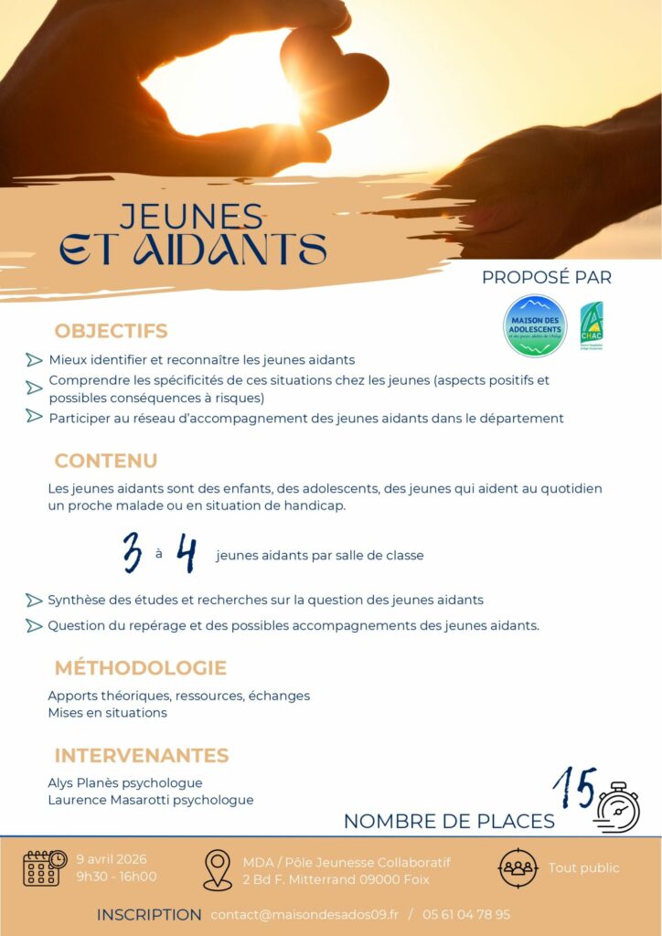 Cette journée de formation est organisée par la Maison des Adolescents et des Jeunes Adultes de l’Ariège. C’est un temps gratuit et à destination de tout public.