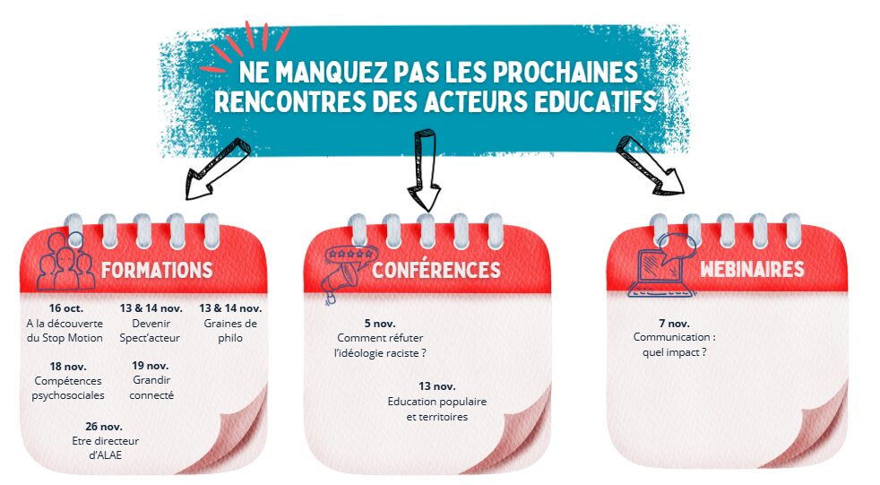 Voici un petit rappel des prochaines rencontres des acteurs éducatifs qui auront lieu en octobre et novembre en Ariège!